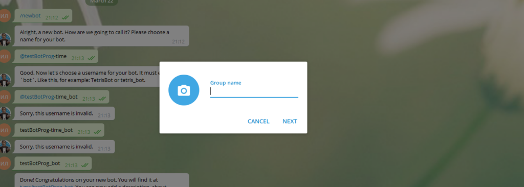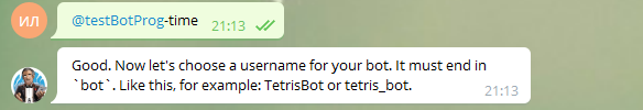 4) После отправки запроса , нужно указать имя бота