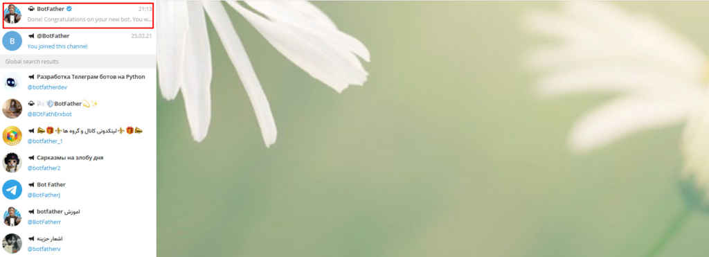 2) В поиске найти пользователя @BotFather