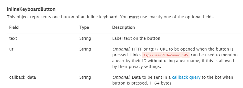 Всю информацию по параметрам запросов мы будем брать из официальной документации Telegram.