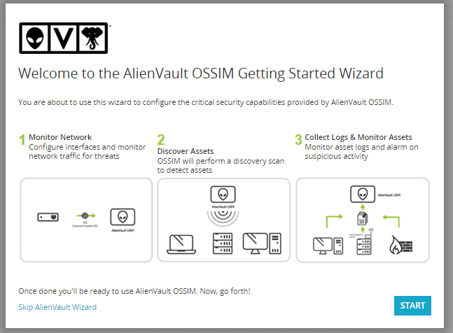 Для настройки сервера OSSIM нажмите на кнопку START на рисунке выше.