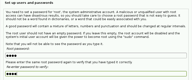 После настройки сети в следующих окнах запрашивается пароль root-пользователя, который может получить доступ к CLI сервера OSSIM. Пароль root-пользователя должен быть надежным.