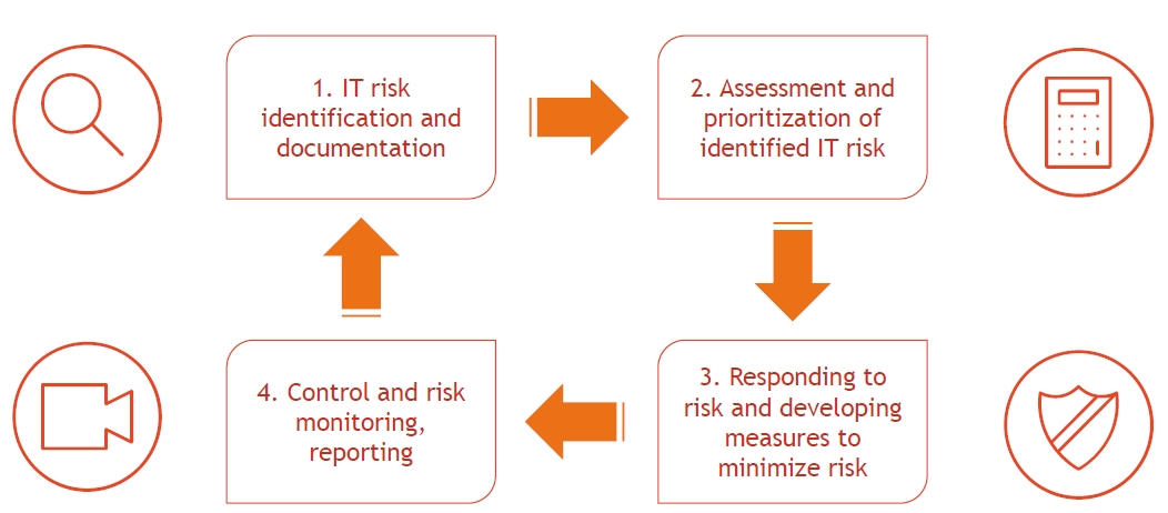 IT risk management is a cyclical process. Next, we will analyze each step in a little more detail.